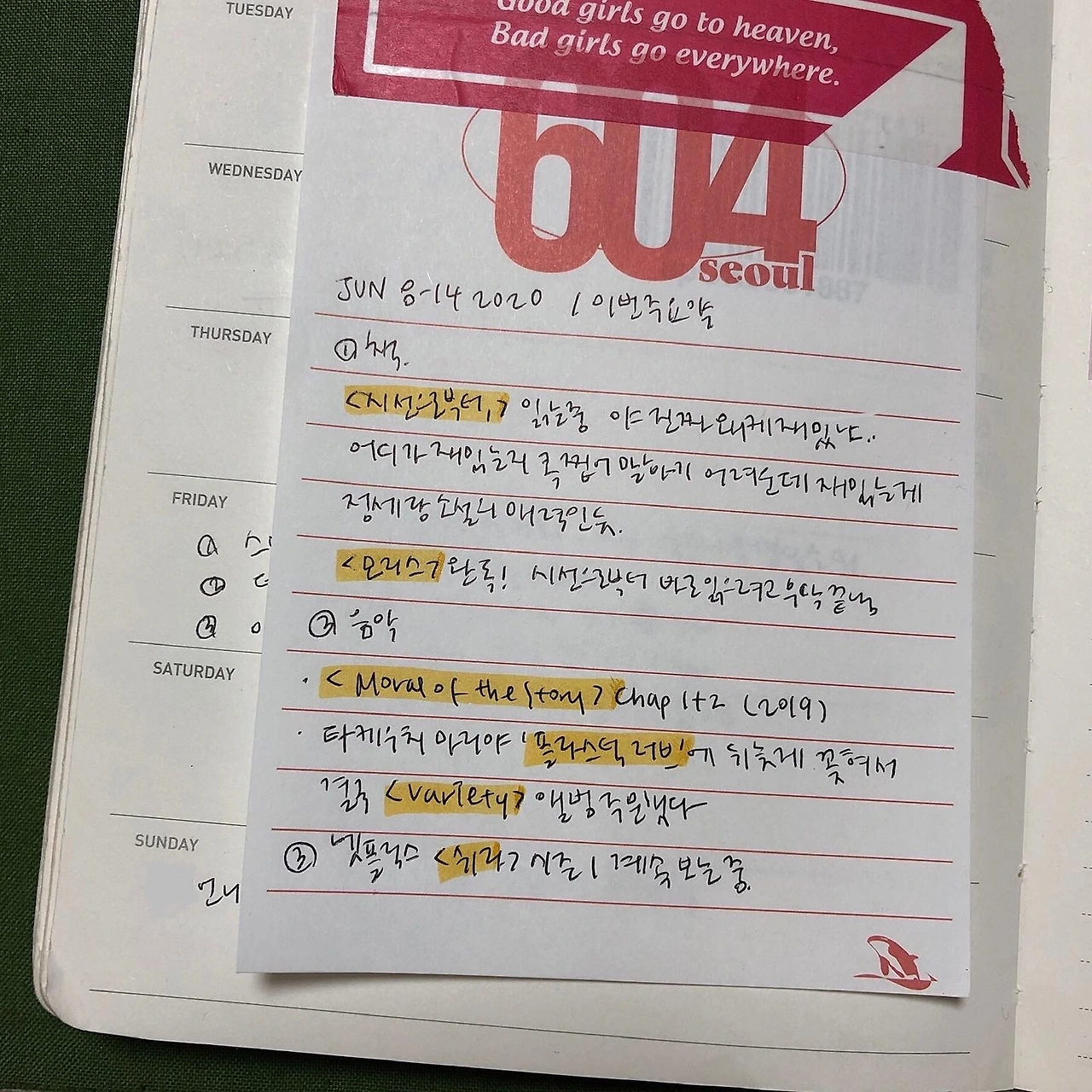 매주 본 컨텐츠 중 가장 인상적인 작품을 기록합니다. 인스타그램(@spaceandtime_)에서 2019년 여름부터 연재하고 있습니다.