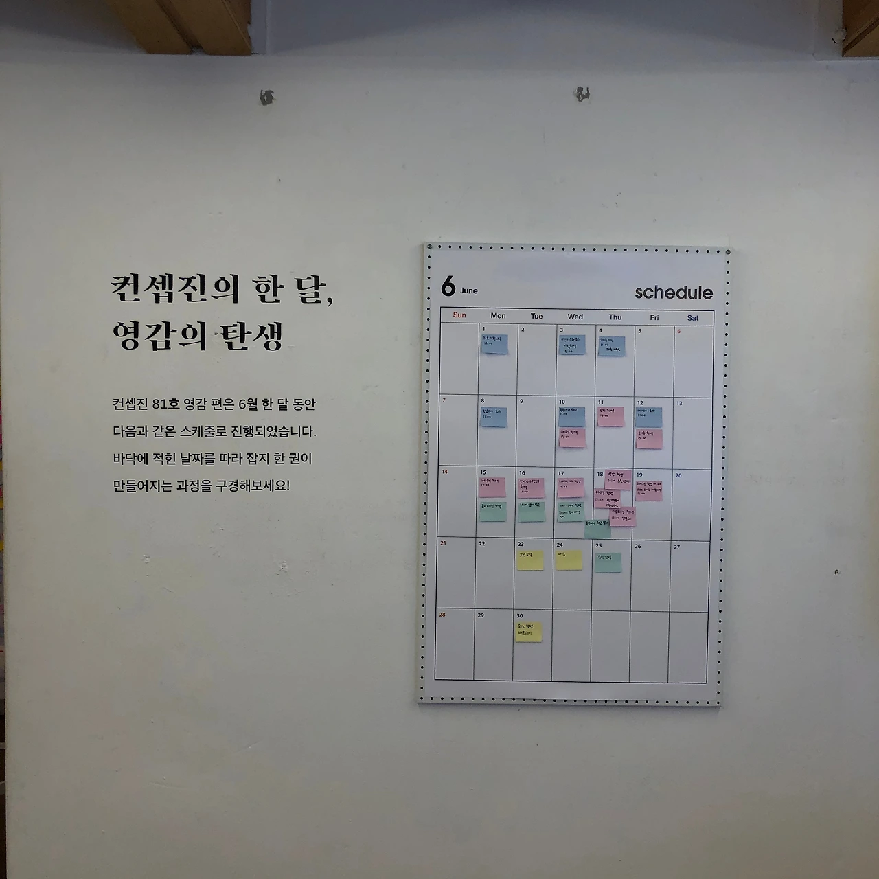 오브젝트 홍대점에서 ‘컨셉진의 한 달, 영감의 탄생’ 전시를 보고 기념으로 <컨셉진> 81호와 엽서 몇 장을 사왔다. 잡지 <컨셉진>이 단행본 한 권을 만드는 과정을 시각화한 전시회였는데, 눈길을 끄는 것들이 많아 사진을 많이 찍었다. 그런데 언제부터 ‘영감’이란 단어가 익숙해진 걸까? 어렸을 땐 에디슨 위인전에서만 본 것 같은 이 단어를 요즘은 인스타그램에서도 매일같이 접한다. 내 계정을 팔로우하는 이들 중 '영감 수집가'들이 있기 때문이다.