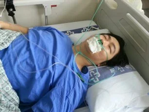 수술을 끝내고 다시 이동용 침대에 누워 병실로 갔다. 병실이 있는 8층 엘리베이터에 문이 열리고 이동용 침대가 간호사실 앞을 지날 때 침대를 옮겨주는 분이 크게 소리를 지른다.