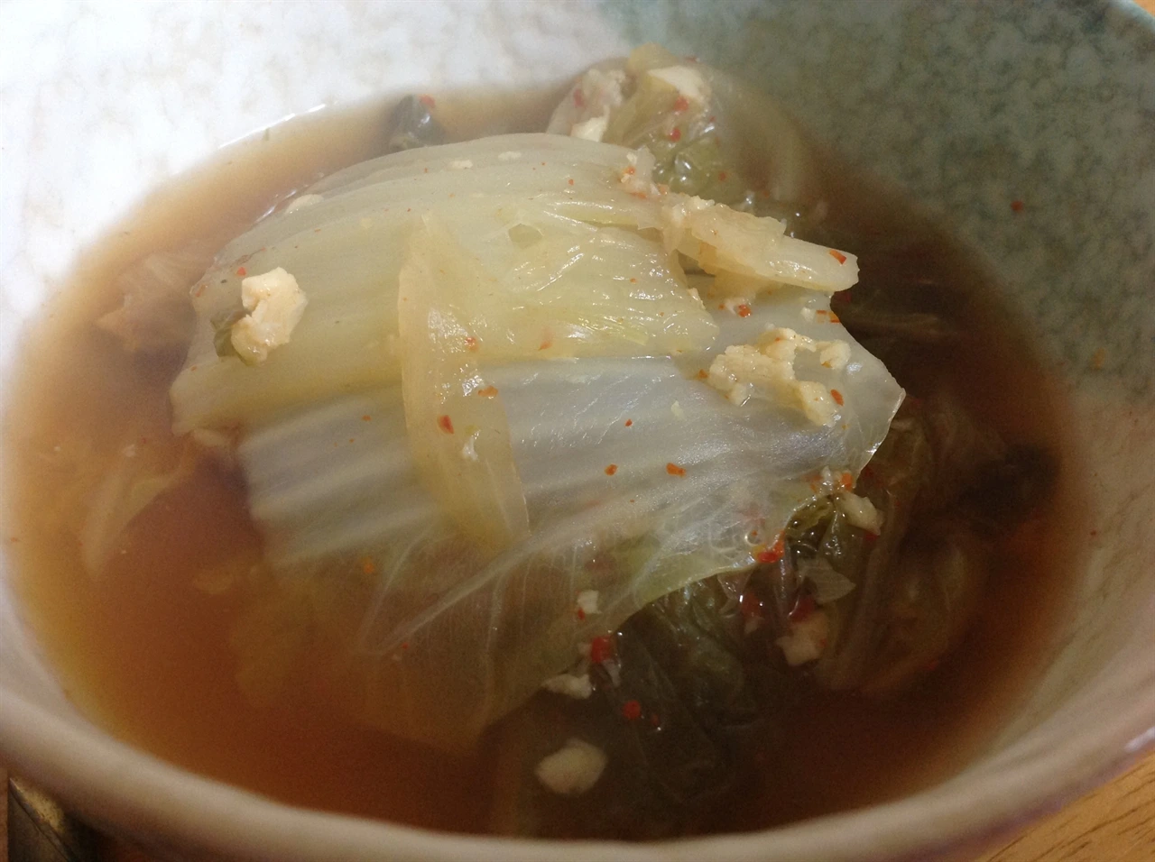 배추는 배춧국뿐만 아니라 겉절이로도 훌륭한데 '김치'를 먹지 못하는 저요오드식 기간 동안 김치를 대용할 겉절이를 만드는 데 사용된다. 배추를 무요오드 소금에 살짝 절여 젓갈을 사용하지 않고 무쳐낸 겉절이. 사과를 함께 넣고 버부린 겉절이를 먹으면서 김치 생각을 이겨낼 수 있었다.