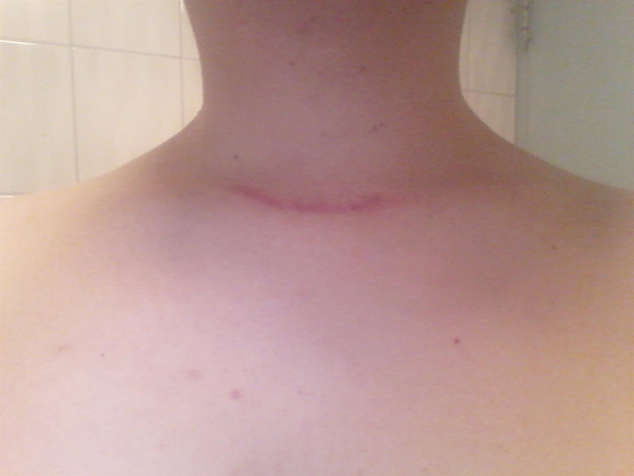 ▲ 흉터 갑상샘암 수술 3개월 후 흉터