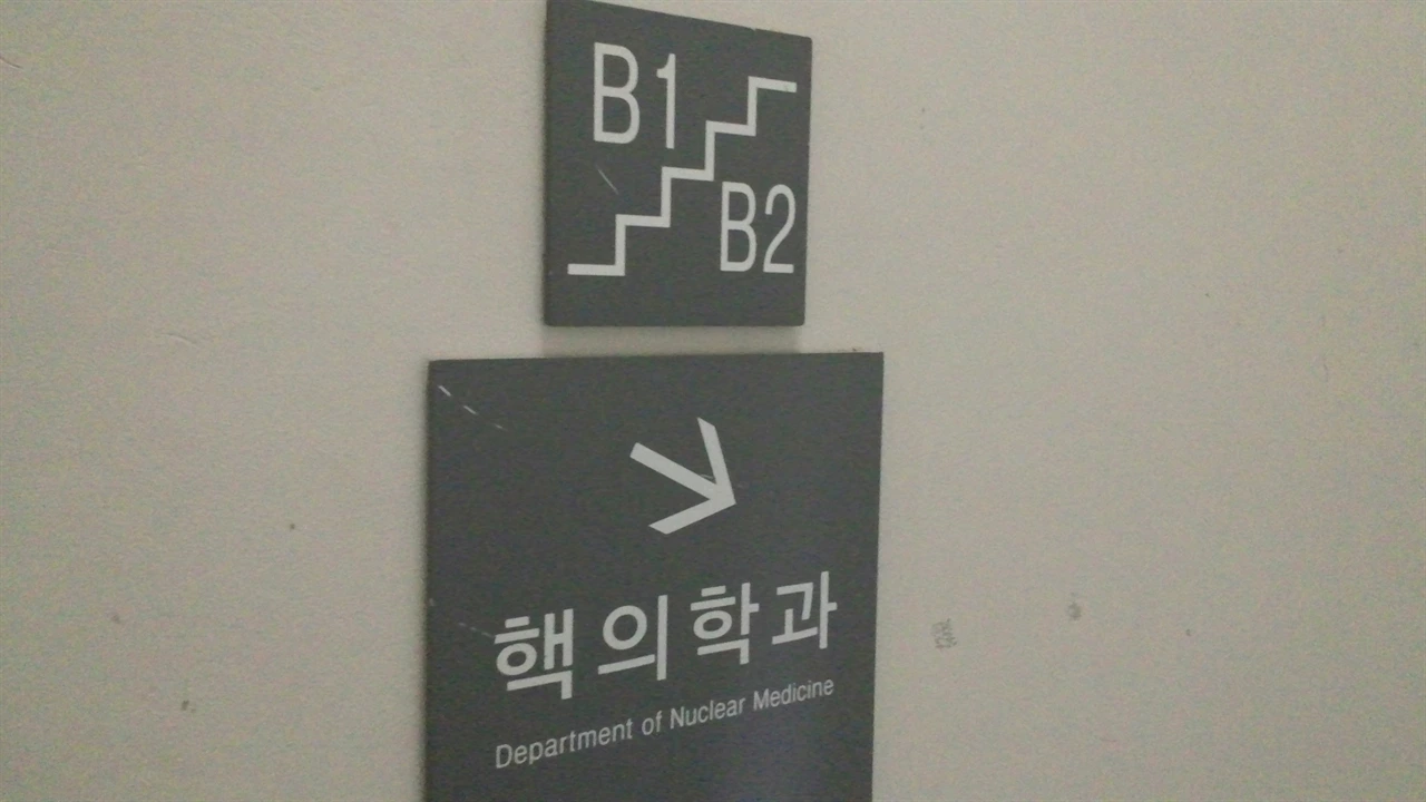채혈을 끝내고 나면 바늘을 꽂았던 곳에 알코올 솜을 대준다. 매번 5분간 꽉 누르고 있으라고 하지만 얼마 안 돼서 솜을 버렸다가 옷에 피가 묻곤 했었다. 그런데 오늘은 바늘 두께를 보고 나서 그런지 가만히 앉아 5분간 솜을 꾹 누르고 있었다. 지혈이 되고 나서 본관을 나와 맞은편 건물 지하 2층에 있는 '핵의학과'로 내려갔다. 매번 엘리베이터를 탔는데 오늘은 무슨 마음에서인지 계단을 이용해 내려갔다.