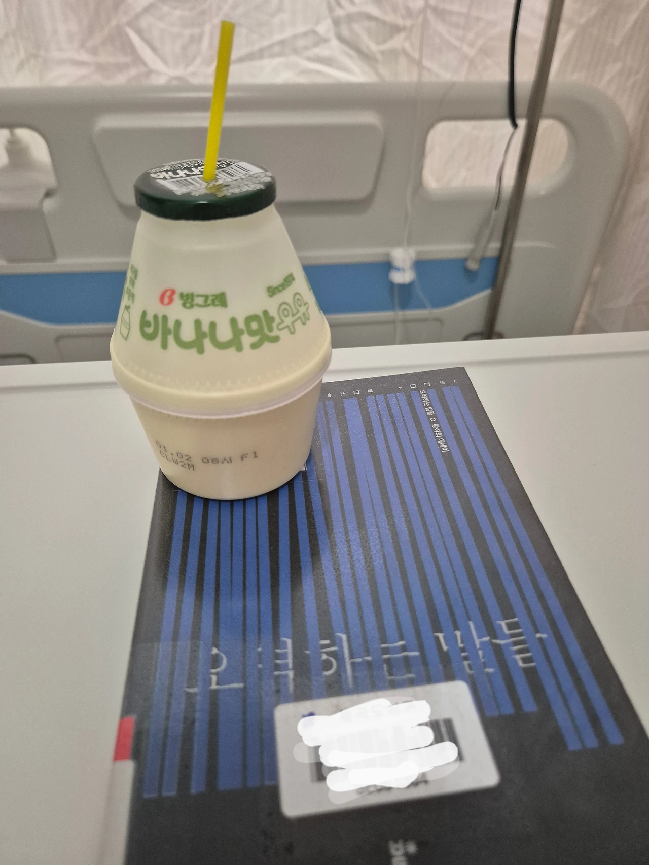 그나마 7시 이후로 물을 마실 수 있게 돼서 바나나맛 우유를 아껴가며 먹는다. 비록 나는 링거줄과 압박 브라에 매여있고, 남편은 좁고 짧은 보호자 침대에 구겨진 채로 있지만 빠른 회복력에 감사하며 우리만의 불금을 누려야겠다.