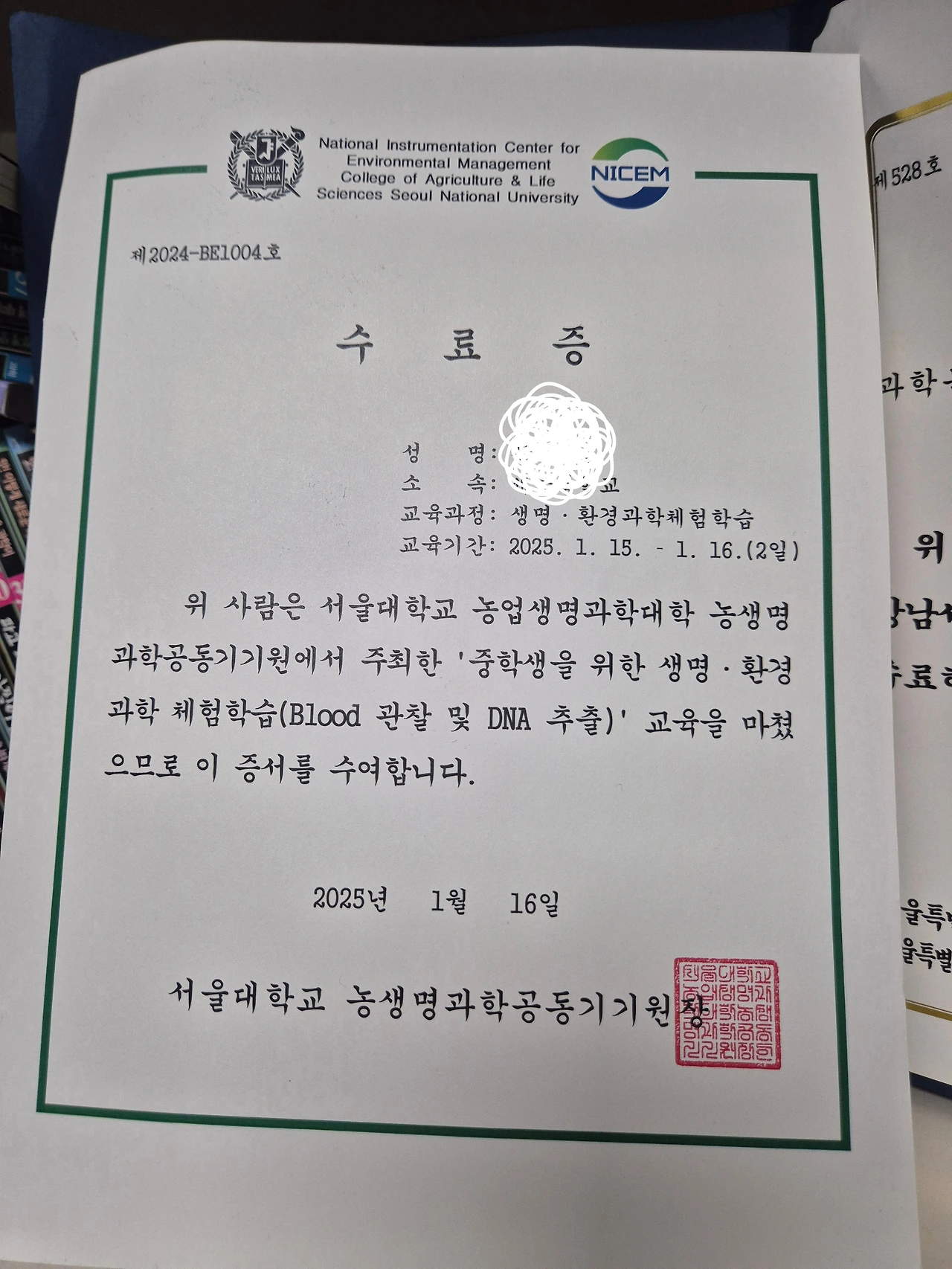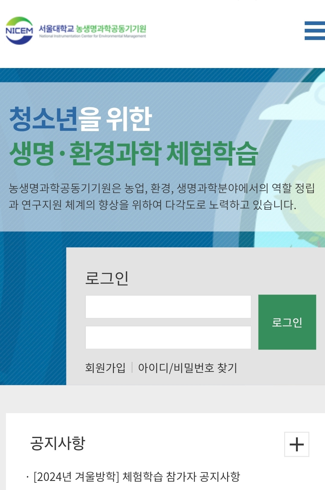 이 특강은 서울대학교 농생명과학공동기기원(NICEM)에서 방학마다 중고생 대상으로 열리는 것 같았다. 워낙 인기가 많다 했지만 날쌔게 성공. 일단 접수는 했어도 혹시 귀찮다 가기 싫다 할까 봐 염려했는데 반응도 괜찮았다.