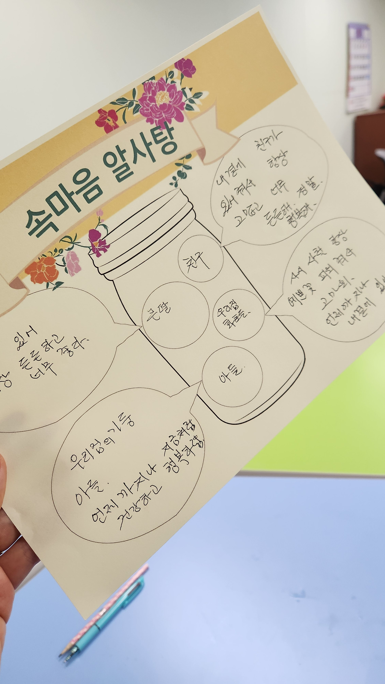 ‘내가 듣고 싶은 속마음’을 떠올리며 그 말을 직접 써보고, 간접적으로나마 마음의 갈증을 해소해보는 것이었지만,