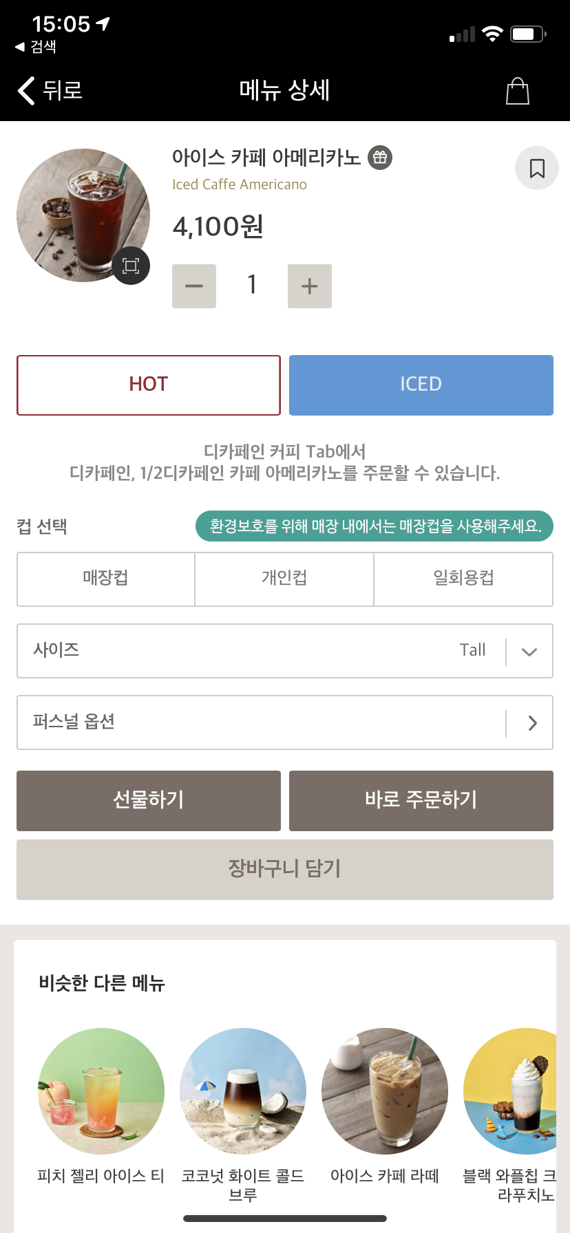 오늘날의 스타벅스로 만들어주는데 가장 큰 일조를 한 메뉴는 스타벅스 아이스 아메리카노 톨 사이즈 이건 단연코 스벅 매출에 가장 큰 기여를 하였다.