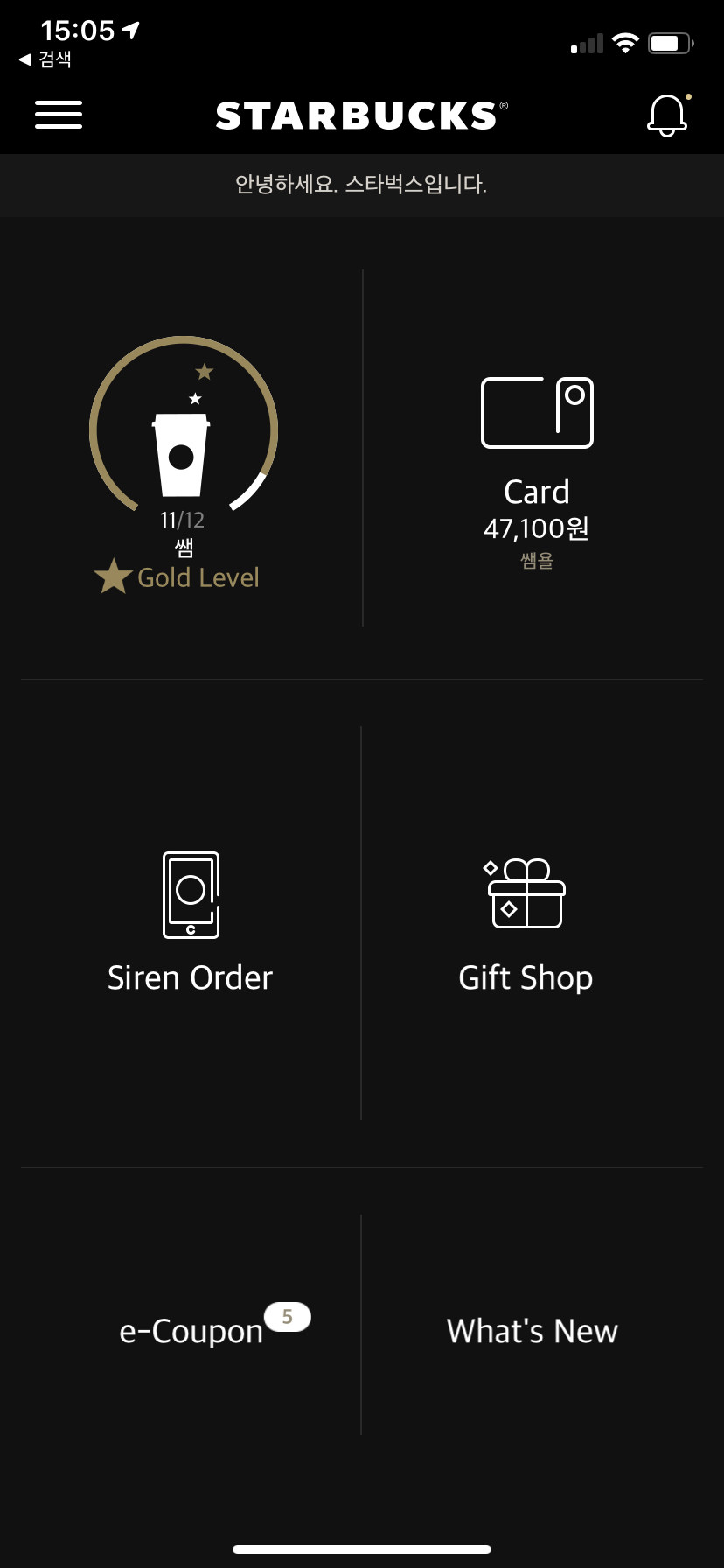 사이렌 오더를 통해 메뉴 주문을 하고 커피를 받아가면 된다. 커피 주문이 완료되면 알람이 뜬다. 현재 있는 위치기준 2km 반경의 스타벅스에서만 주문이 가능하다. 스타벅스에서 줄을 서서 결제를 하는 것보다 어플로 직접 고객이 주문을 하는 것 이것이 어떻게 보면 스타벅스의 핵심 기술로 자리 잡고 있다. 사이렌 오더를 통한 주문이 매출의 50%를 넘어간다고 하니 이는 현금 없이 결제를 하고 있고, 추후에는 현금이 없어도 디지털로 결제를 하고 커피를 마실수 있다는 것이다.