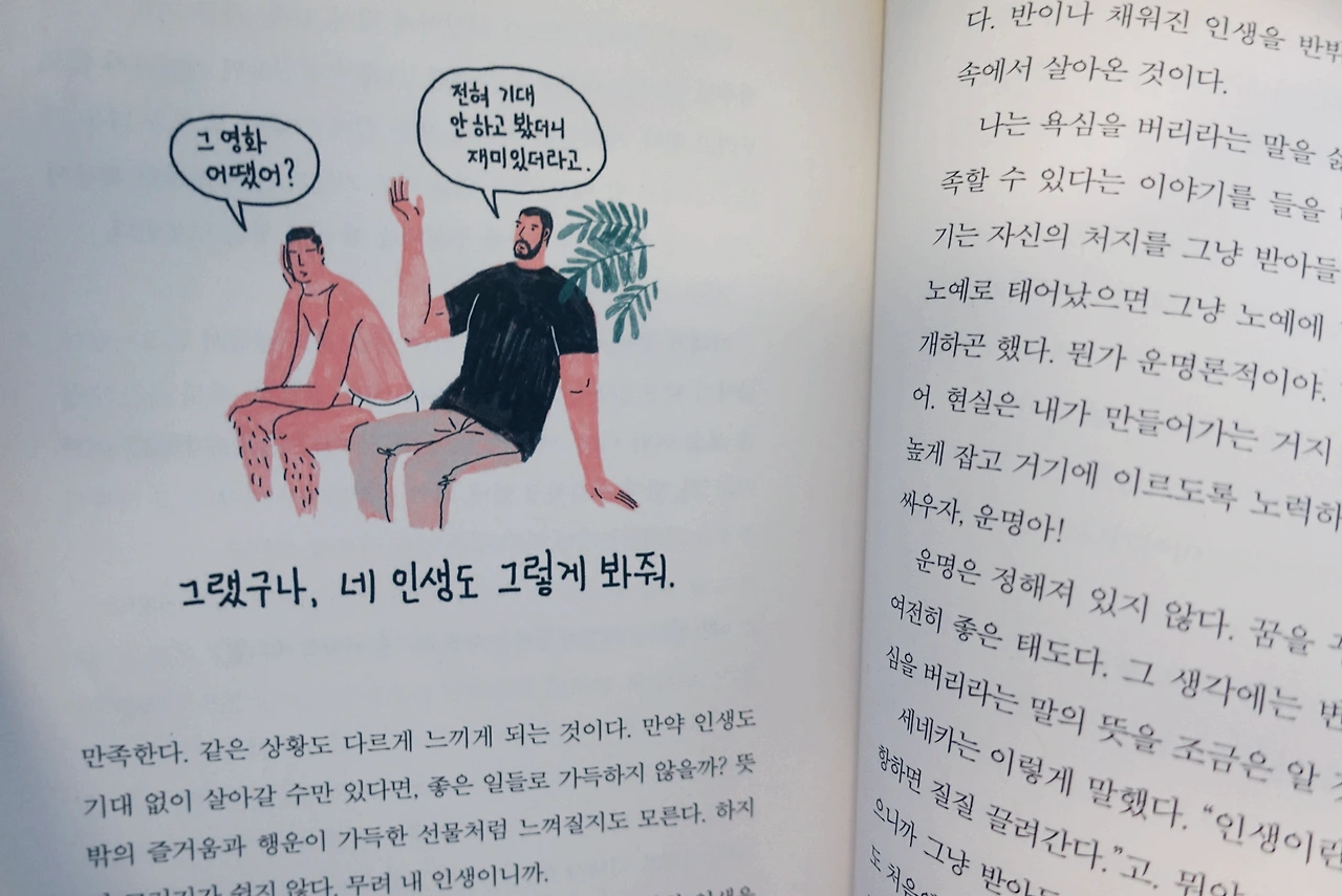 "열심히 노력했다고 반드시 보상받는 것은 아니다. 그리고 열심히 안 했다고 아무런 보상이 없는 것도 아니다. 그렇다. 우리가 믿었던 것과는 다르게 인생은 이처럼 아이러니하다. 우리가 지금 괴로운 이유는 우리의 믿음, 즉 노력이 우리를 자주 배신하기 때문이다. 왜 노력이 우리를 배신하는지, 그럼 이제 어떻게 살아야 하는지 물어도 나는 답을 알지 못한다. 다만 괴로움을 줄이는 법은 안다. 분하지만 '인정'해버리는 것이다. '노력해도 안 되는 것이 있고, 노력한 만큼 보상이 없을 수도, 노력한 것에 비해 큰 성과가 있을 수도 있다'라는 사실을 인정하면 괴로움에서 조금 벗어날 수 있다."