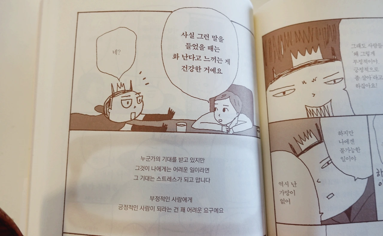 <이대로 괜찮습니다>는 부정적인 생각과 감정 때문에 힘들어하던 자칭 '네거티브 퀸' 만화가 텐텐씨가 대인관계치료를 하는 정신과 의사를 만나 상담을 한 내용들을 만화 형식으로 읽기 쉽게 정리한 책이다.