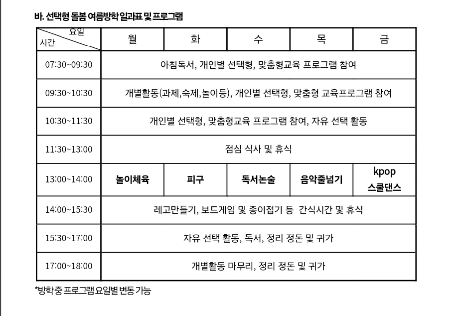 방학 중 돌봄교실을 신청하여 이용해보았는데,