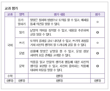 재시험의 기회를 제공하면서, 대부분의 교과에 *잘함(◎)을 표기하고