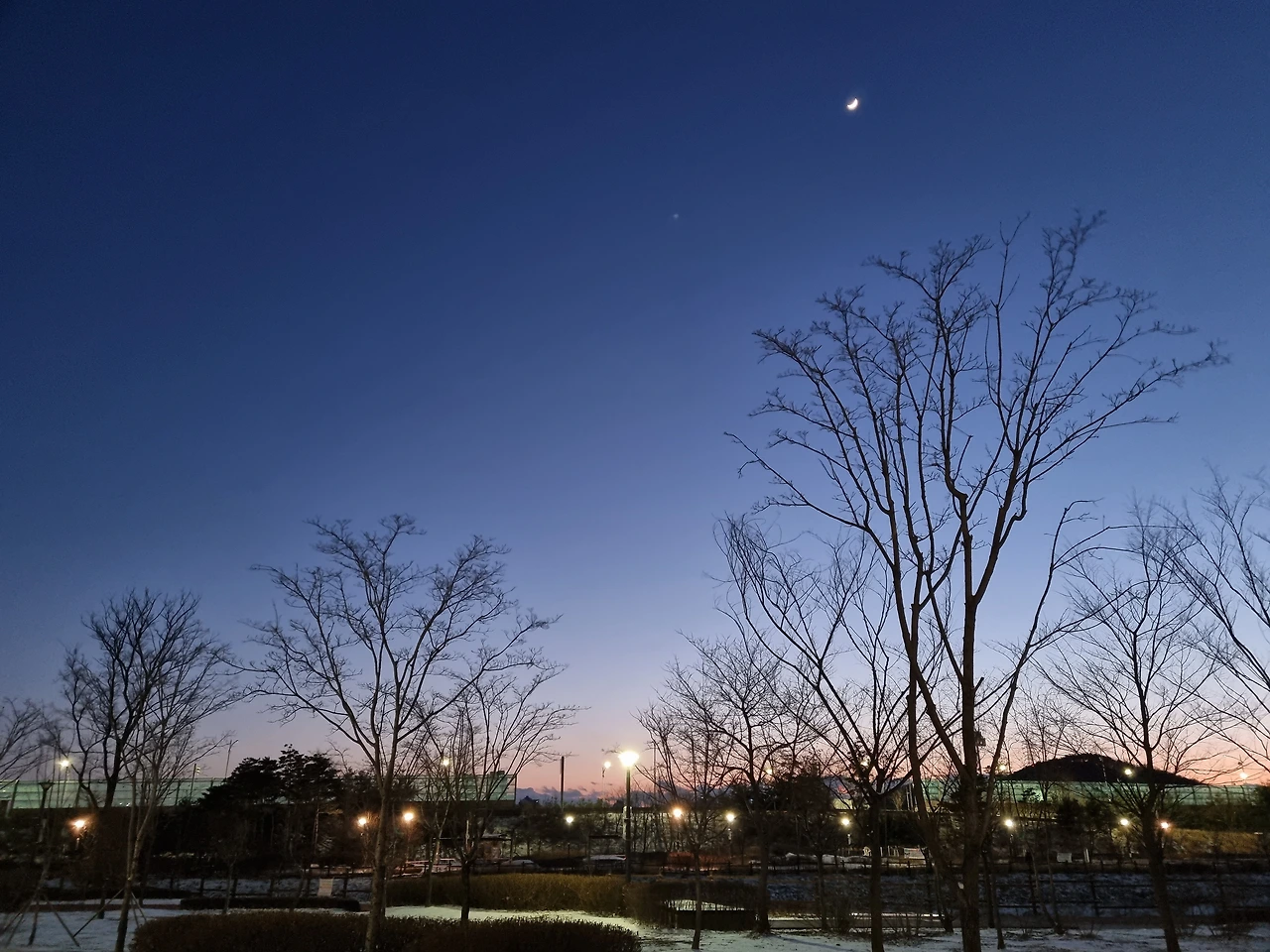 H가 서있는 맞은편, 차가 잘 다니지 않는 길 건너에 공원이 있다. 그리고 그 건너 끝에는 노을이 지고 있다. 겨울 끝 시린 바람에 앙상한 나뭇가지가 흔들리고 있고, 누런 잔디밭 이곳저곳에는 듬성듬성 미처 녹지 못한 눈들이 얼어있다. 퇴근 버스에서 내려 집으로 가던 H는 그만 노을에 발걸음을 멈춰 서 있었다.