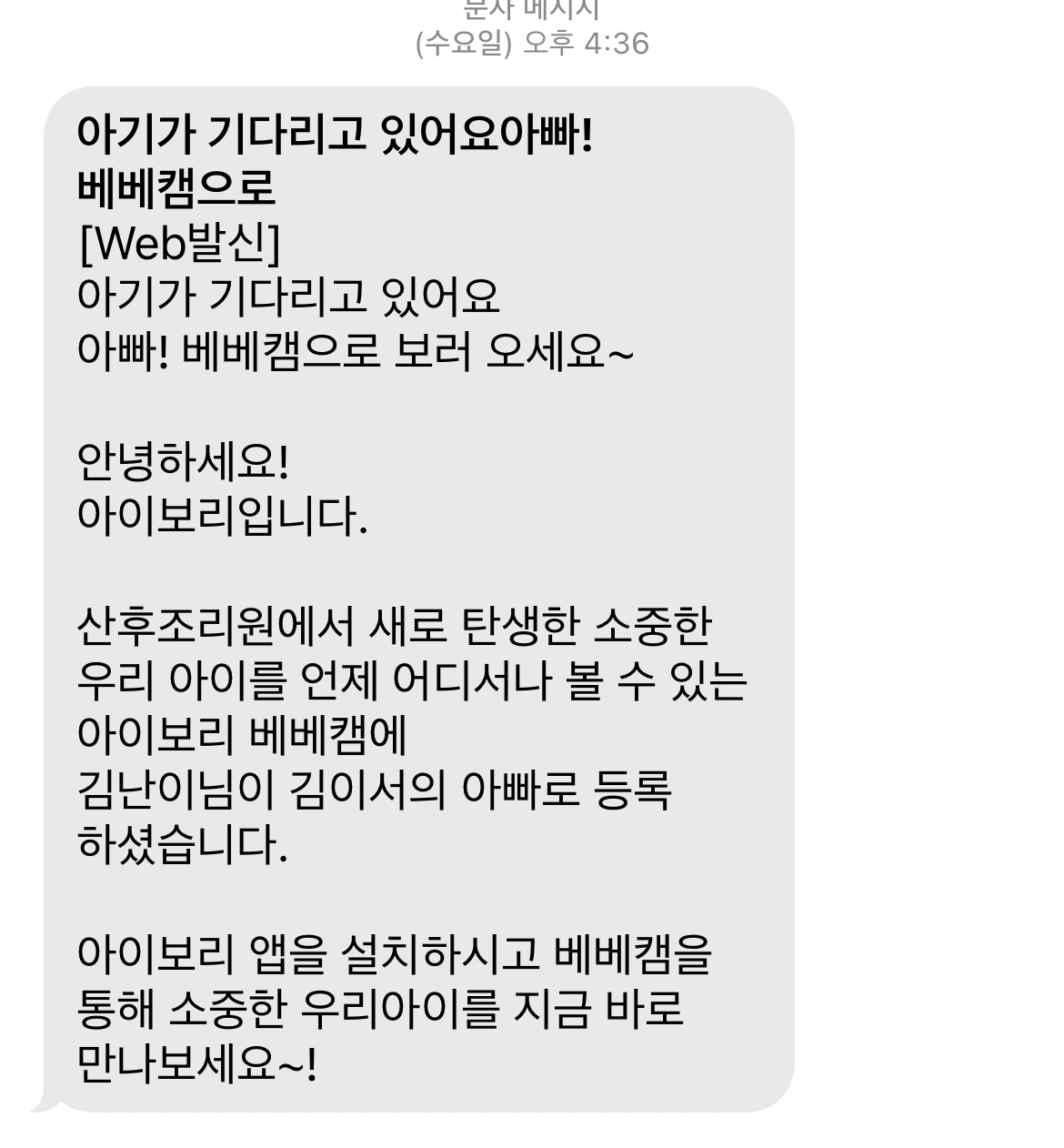 이 서비스를 이용하기 위해서는 특정 어플에 가입해야 하고, 어플에서는 가족으로 등록된 사람들에게 이용을 독려하는 문자를 보냈던 것이다.