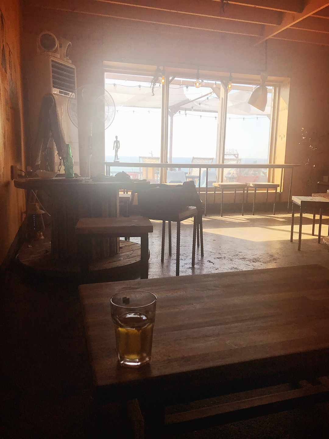 목을 축이고 갈 수 있을 거란 작은 희망과 행복감이 든다. 카페에 들어서 짐을 내려놓고 계산대 앞으로 간다. 이미 오전과 오후에 커피를 마셔서 더는 커피가 당기지 않는다. 마땅히 시킬 음료가 없어서 고민하던 찰나에 계산대 넘어 냉장고가 보인다. 그 안에 초록색 병에 담긴 하이네켄 맥주가 눈에 들어온다. 메뉴판에 없는 걸 보니 파는 것 같지는 않았다. 그런데도 확인 차 아주머니에게 물어본다.