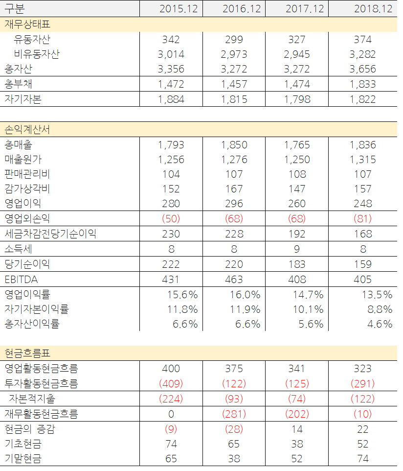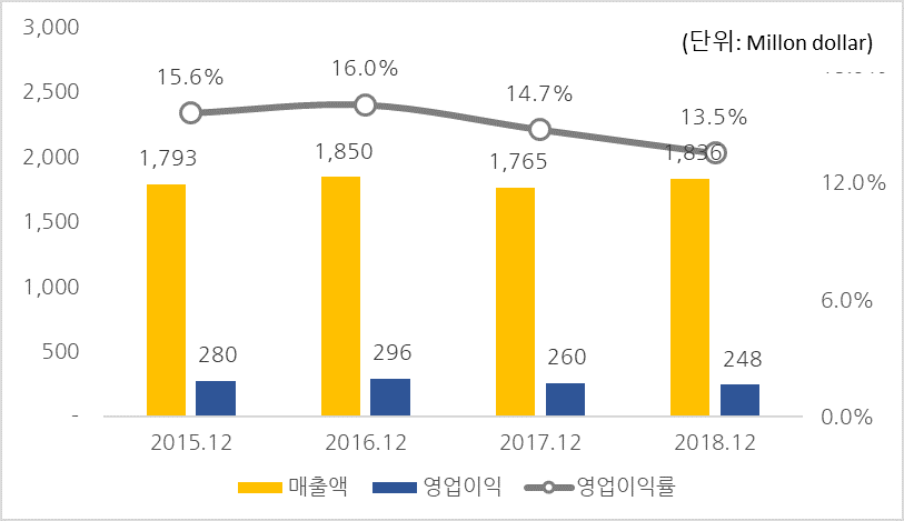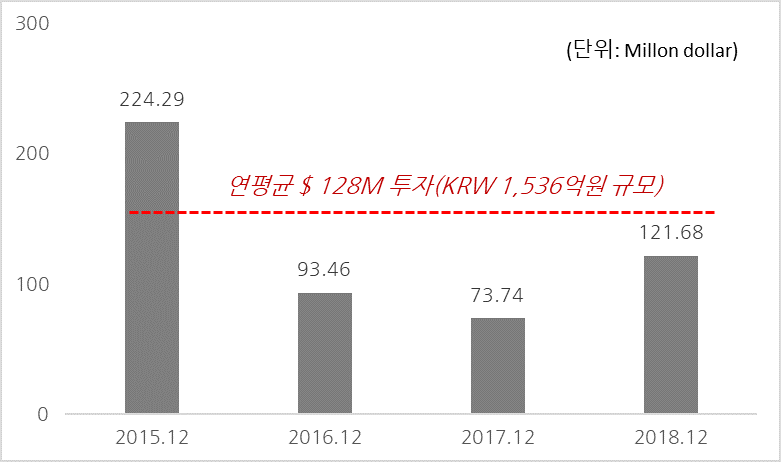 최근 4개년 평균 $128M의 자본적 지출이 발생하였으며, 한화 약 1,536억원 규모로 총자산 $3,600M의 3~7% 수준의 투자가 지속해서 이뤄지고 있다.