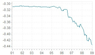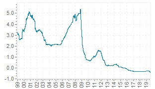 이와 더불어, 유로화를 사용하는 유럽연합내 국가의 기준 금리인 유리보(EURIBOR, 3개월)가 2016년을 기점으로 마이너스 금리에 접어들었다. 2019년 연초에는 -0.31% 수준이었으나, 6월 이후 급격히 떨어져, 9월 현시점 30% 정도 떨어진 -0.43% 수준에 머물고 있다.