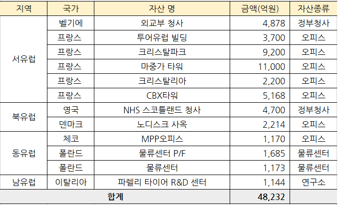 이에, 부동산 펀드를 설정하지 않고 직접 투자하는 것 감안하면 실제 투자 규모는 훨씬 더 클 것으로 예상된다.