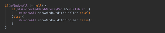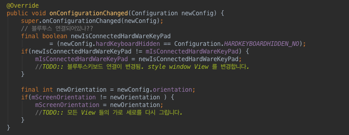 onConfigurationChanged()에서 키보드가 연결되거나 해제될 때, 아래 그림처럼 처리했다.