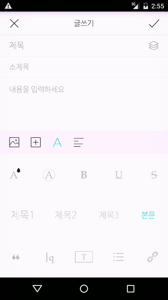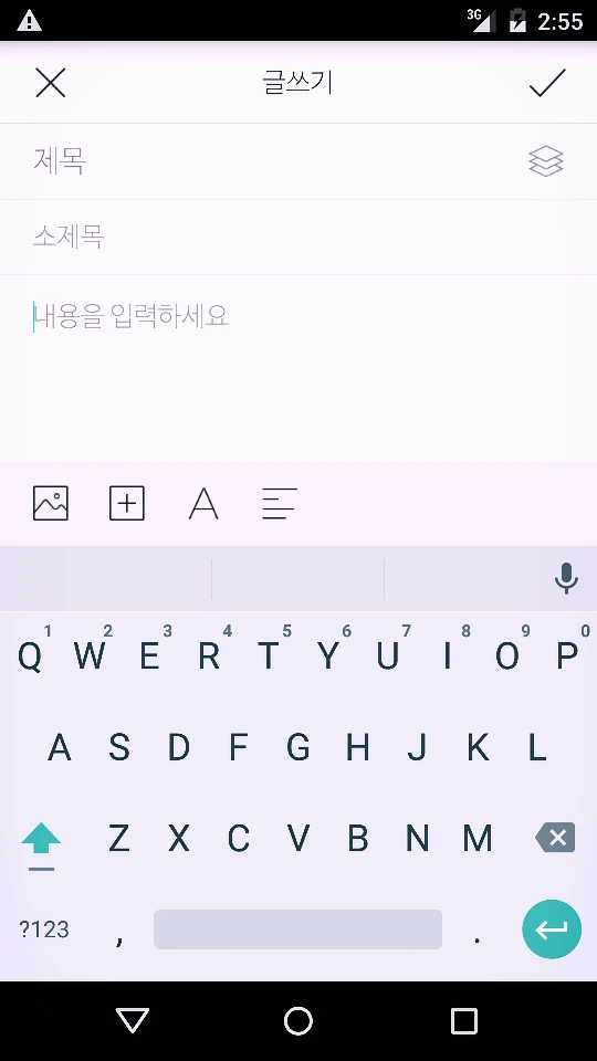 여기서 [사진첨부].[기타첨부].[글자스타일].[정렬] 버튼들이 있는 View는 Soft KeyPad가 올라오면 그 위로 올라오게 되는 View이다.