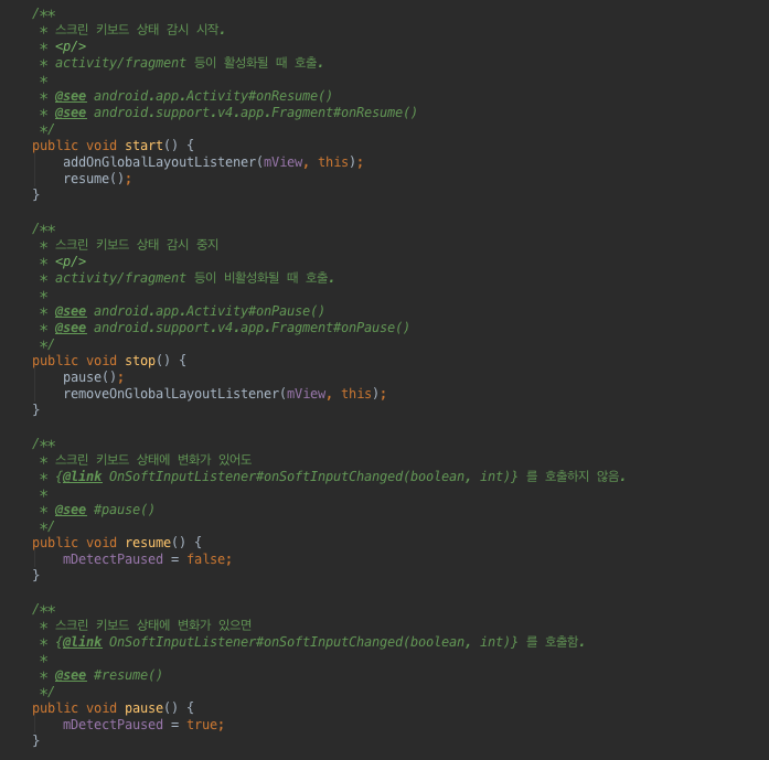 키패드의 변화를 알아먹기 위해서 이용한 것은 ViewTreeObserver.OnGlobalLayoutListener 이다.