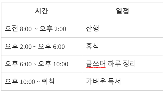 산 생활 일과표