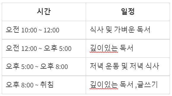 도서관 생활 일과표