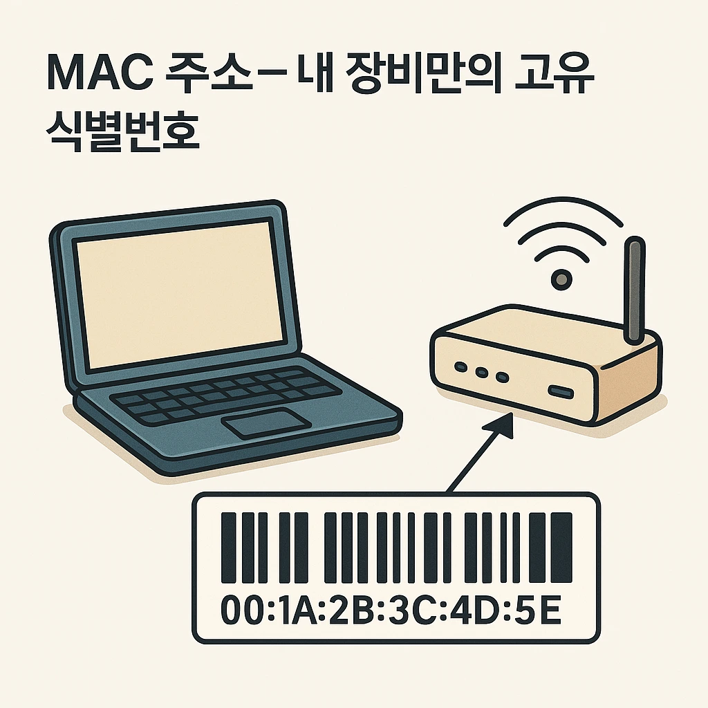 MAC 주소는 한 기기의 ‘주민등록번호’ 같은 존재입니다. 태어날 때 부여되고, 대부분 바뀌지 않죠. 인터넷에 연결되는 모든 기기는 이 MAC 주소라는 고유한 번호를 가지고 있습니다. 이 번호는 보통 16진수 형태의 문자로 구성되어 있어요. (예: 00:1A:2B:3C:4D:5E)