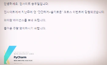 그리고 당첨!!!, 하지만 제가 PyCharm은 안 쓰는 관계로 아는 지인에게 전달~