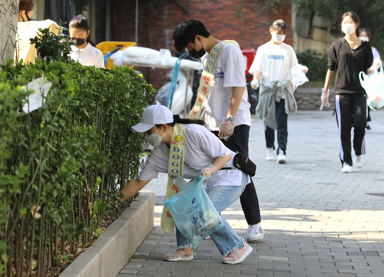 [좌] 텅 빈 명동 거리 ⓒ시사IN 이명익; [우] 플로깅(Ploging – 달리면서 쓰레기를 줍는 활동) 중인 도곡 1동 주민들(https://www.gangnam.go.kr)