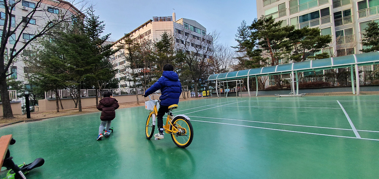 첫째가 드디어 두발 자전거를 타는데 성공했다. 보조 바퀴를 떼지 못하고 타오던 것을 과감히 도전해 보기로 하고 단지 내에서 수십번 넘어지고 일어나는 것을 반복했다. 결국, 첫째 학교 운동장에서 두발 자전거를 타는데 성공! 뒤에서 잡고 있던 손을 놓고 아들이 자전거를 타고 맘껏 달리는 모습은 부모만이 느낄 수 있는 뿌듯함과 보람.