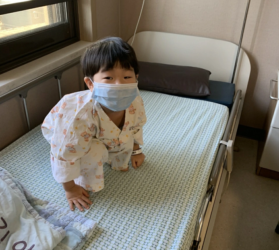 수술 받기전 침대에서 개굴 개굴을 외치는 둘째