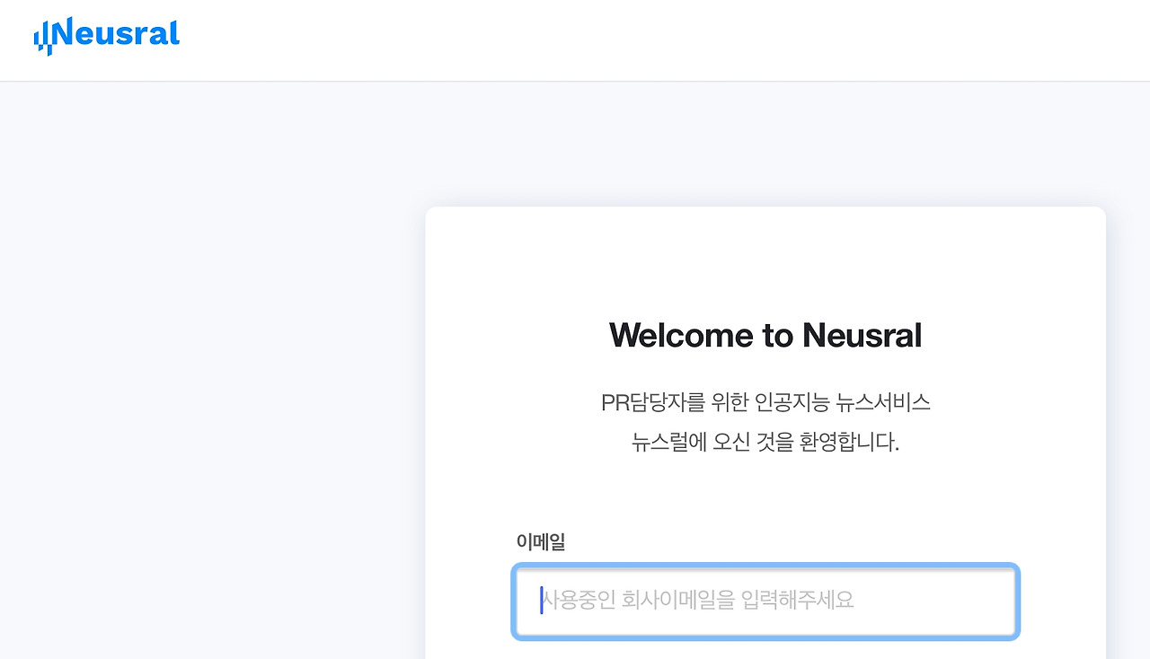 ‘뉴스럴’ 이란 서비스로 로그인 창에 카피만 봐도 어떤 서비스인지 정체성을 명확하게 보여준다.