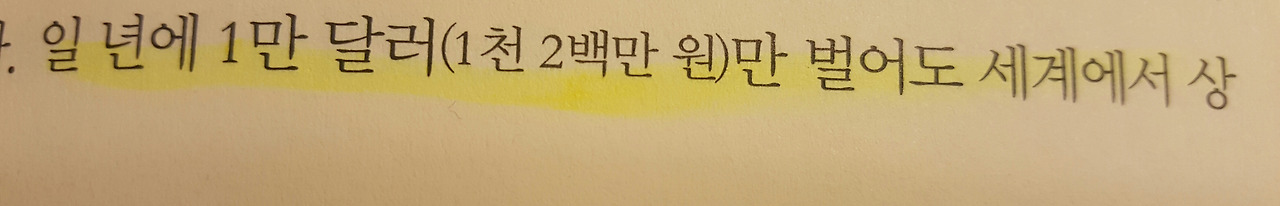 주머니에 2만원이상이 있다면 세계 상위 17%입니다.