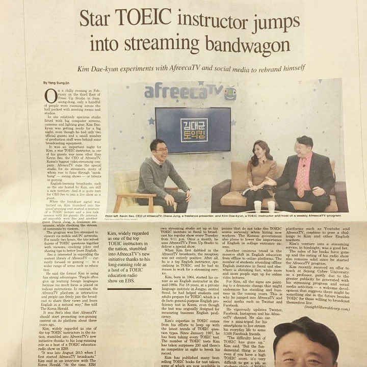 김대균 토익은 여러분 덕분에 크게 발전해 왔다.
