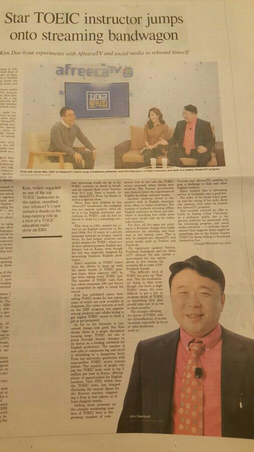 지난주 김대균 코리아 헤럴드 전면 인터뷰 기사도 참 감사하다. 아프리카TV 김대균토익킹, EBS FM 김대균토익킹 덕분에 기사가 잘 나왔다.