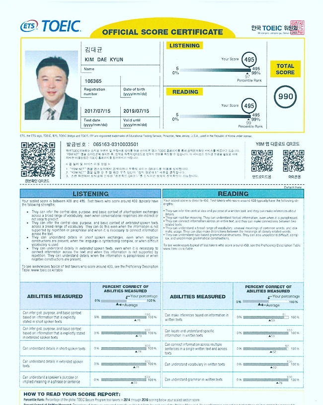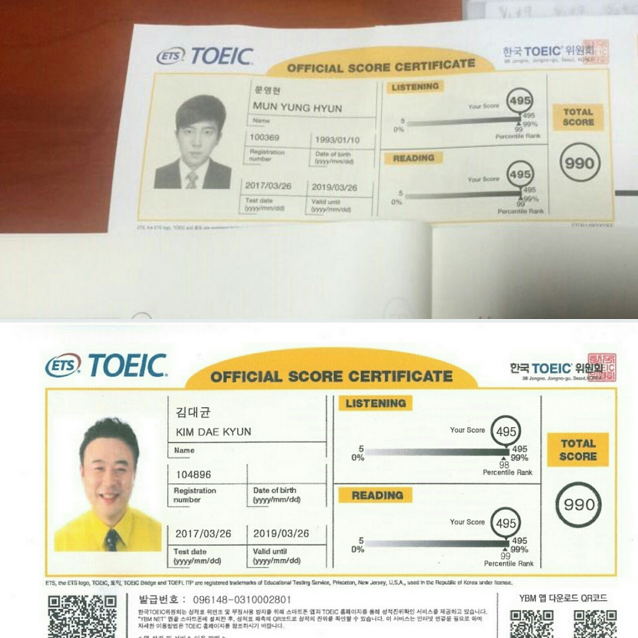 이런 김대균 토익 시험장 인증샷까지 찍고