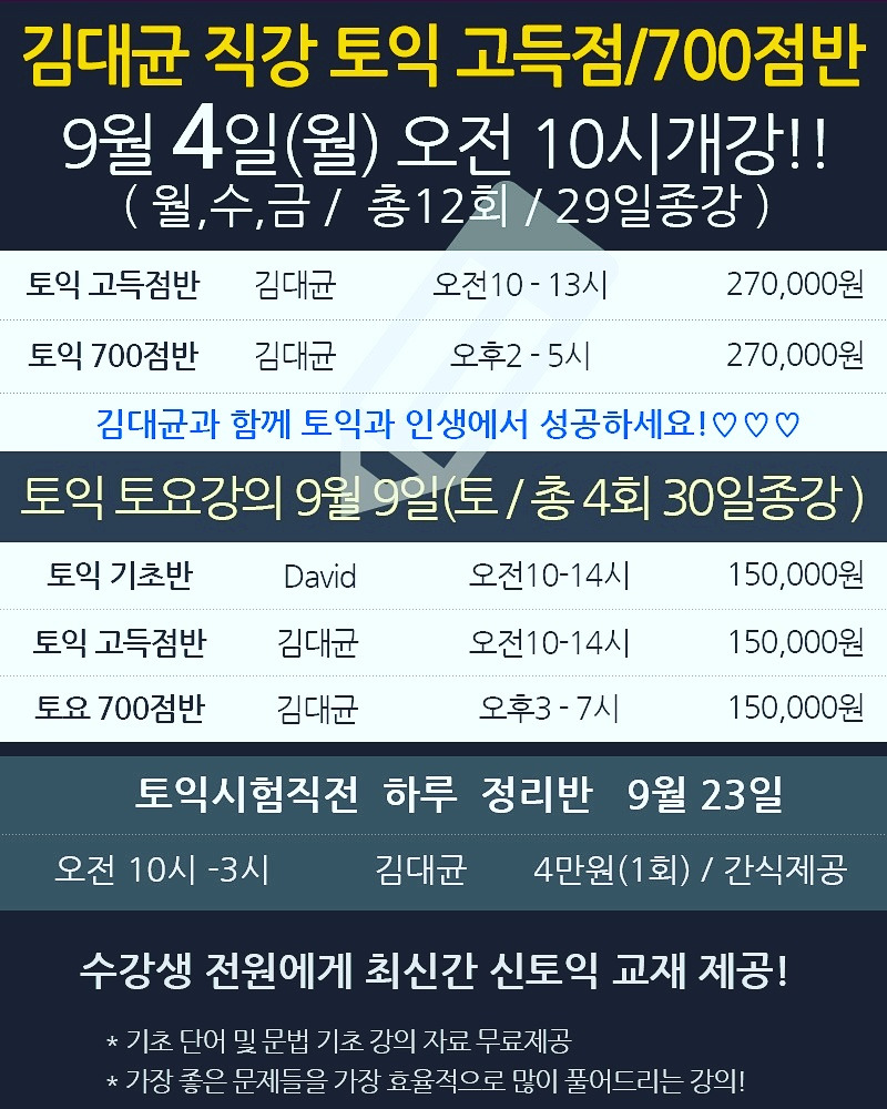 월, 수, 금, 토 김대균 어학원 토익 강의