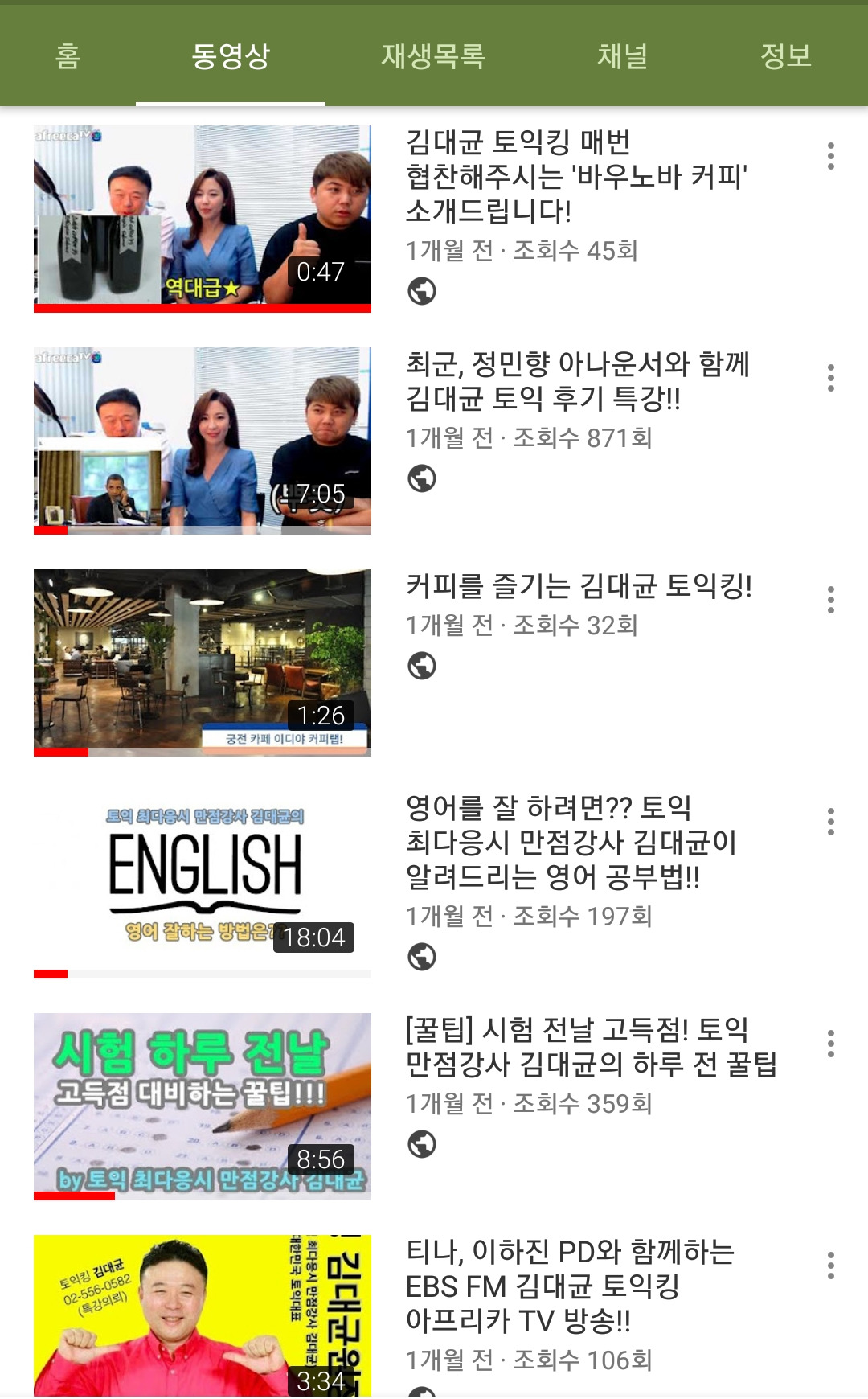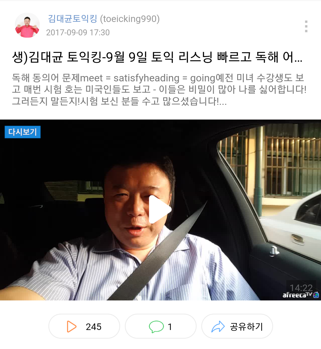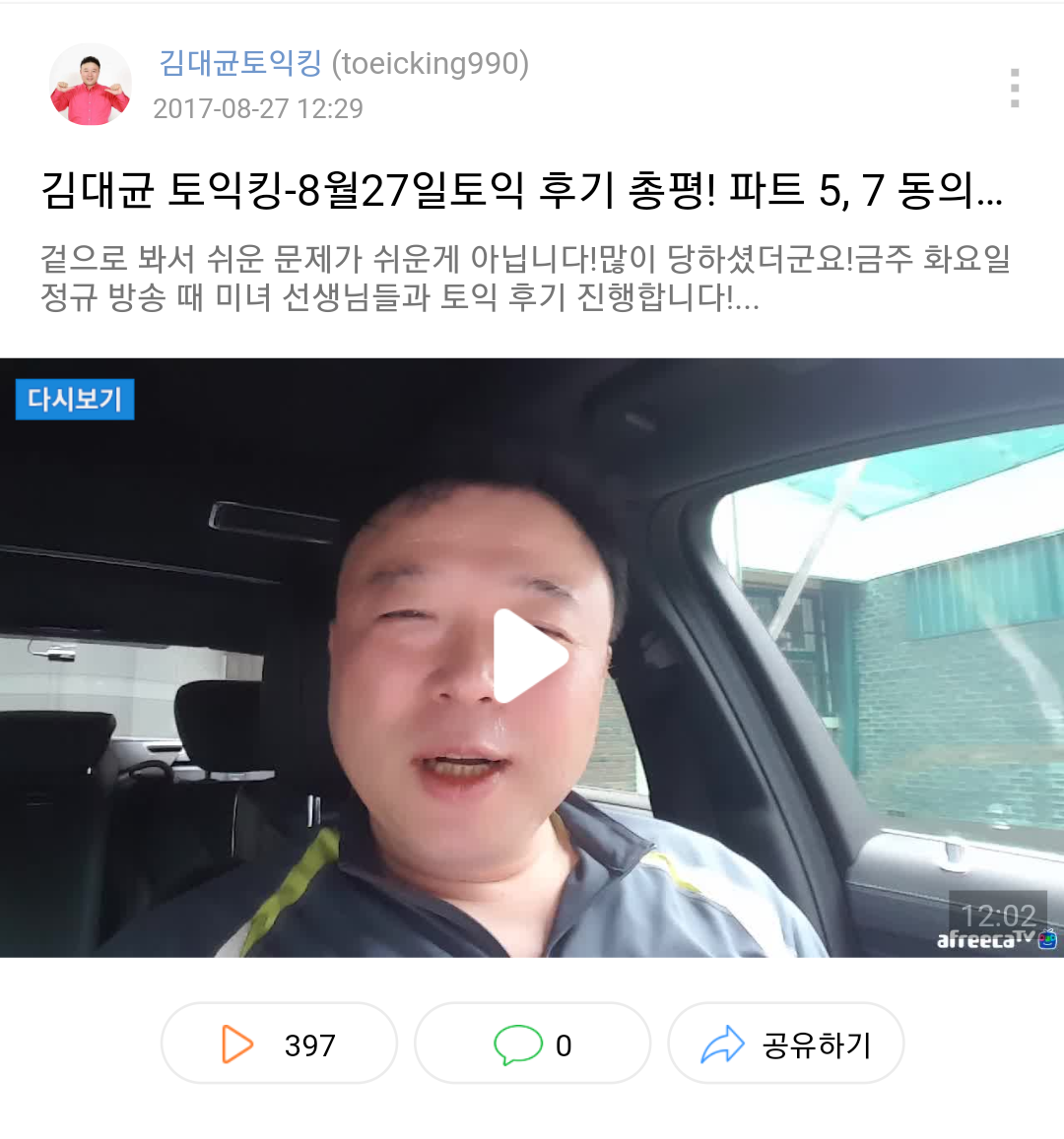 시험끝나고 찍는 토익후기 다시보기가 많은편.