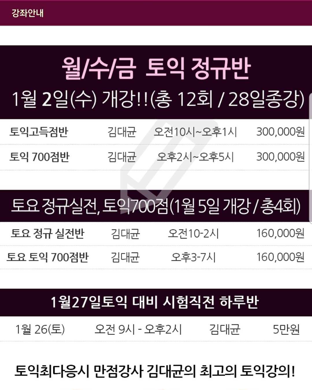 삼성동 김대균어학원에서 토익강의중입니다!
