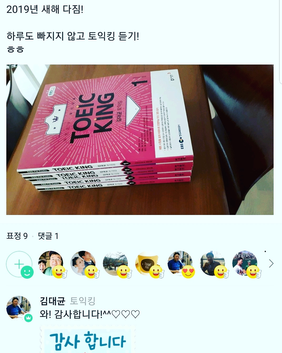새해다짐을 김대균 토익킹 밴드에 올려주신 종호떼기님!