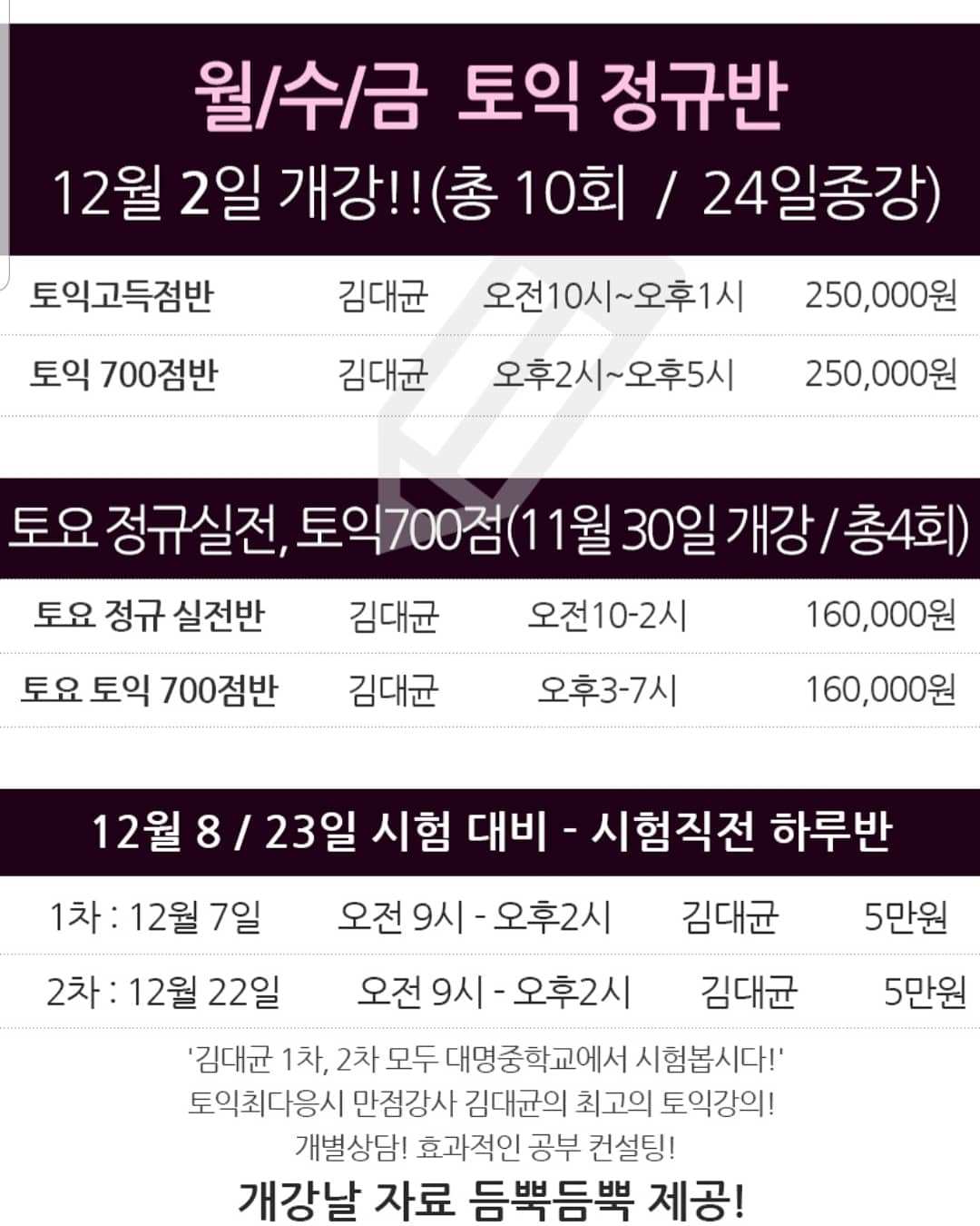 토익은 김대균어학원에서 공부해보세요