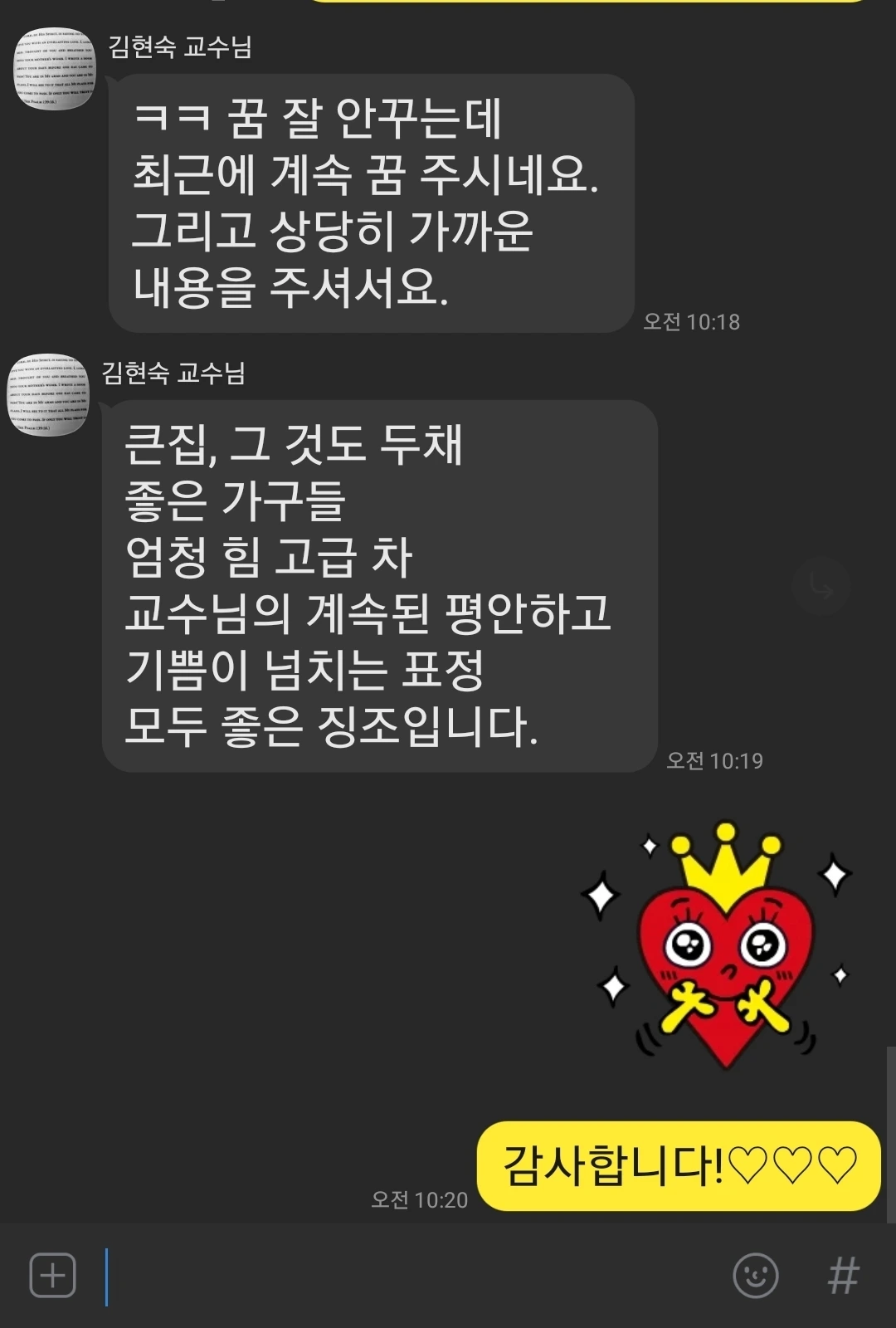 ㅋㅋ 꿈 잘 안꾸는데 최근에 계속 꿈 주시네요. 그리고 상당히 가까운 내용을 주셔서요.