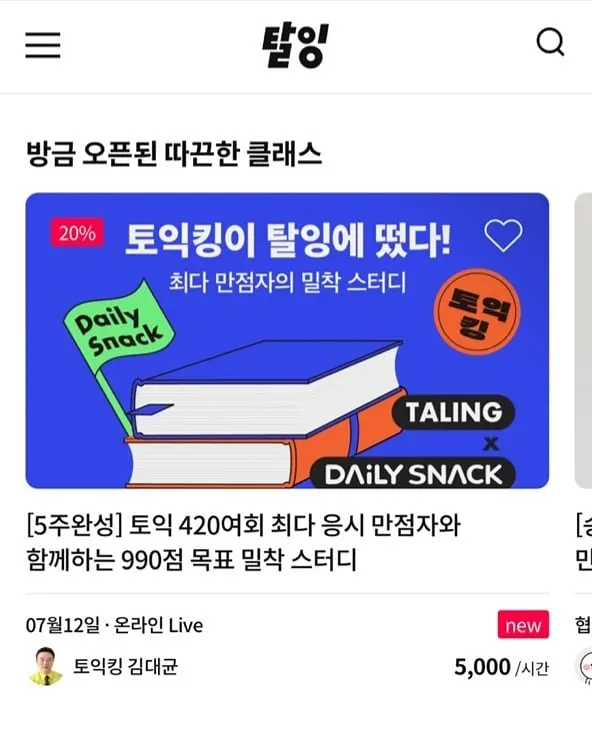 김대균토익킹이 휴넷과 탈잉에 떴다! 수강신청하기