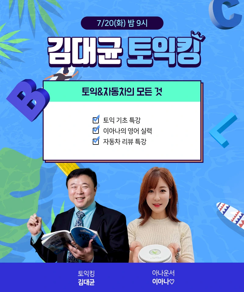 금주 화요일밤 9시 아프리카티비 김대균토익킹 자동차 특집