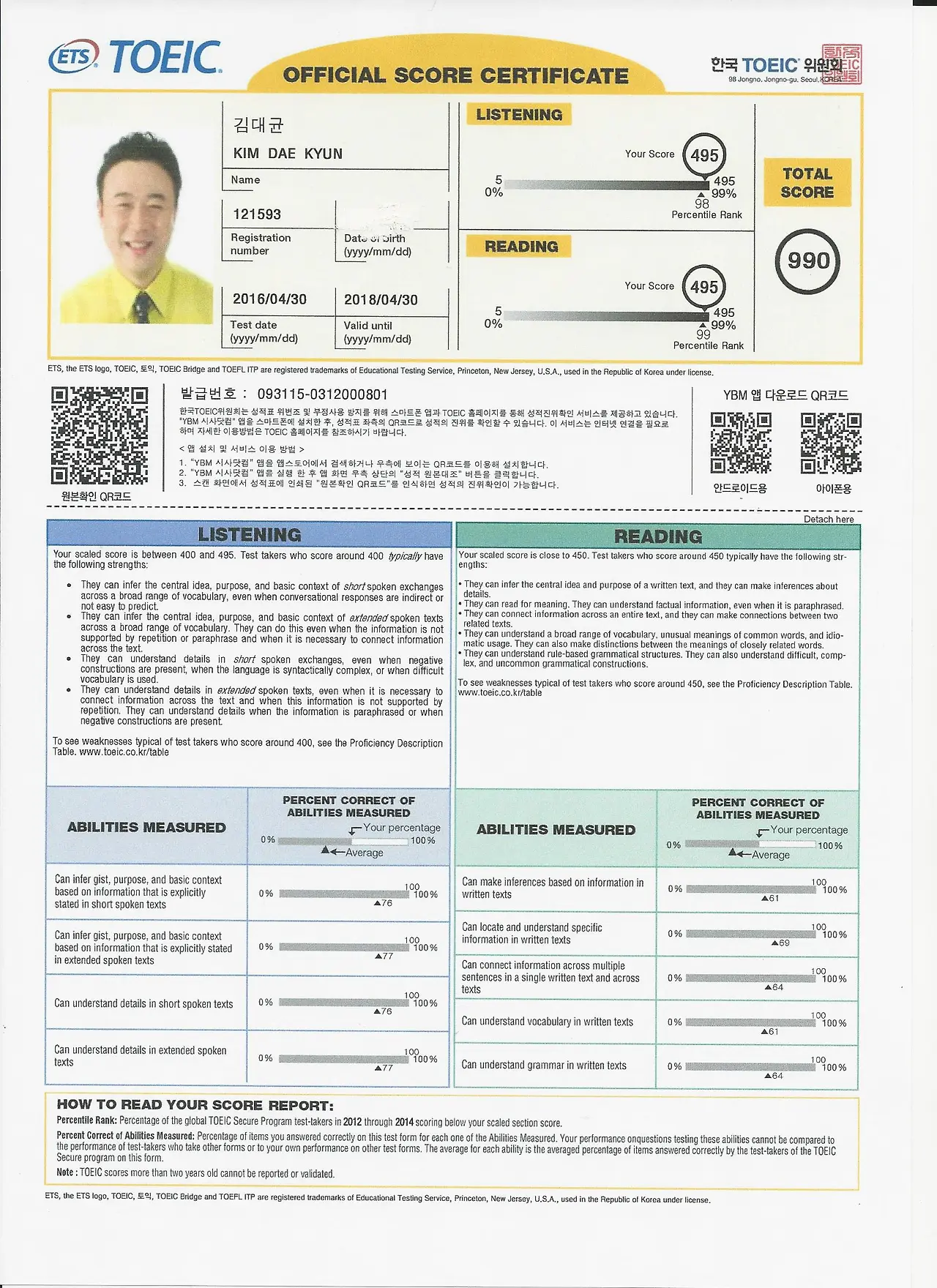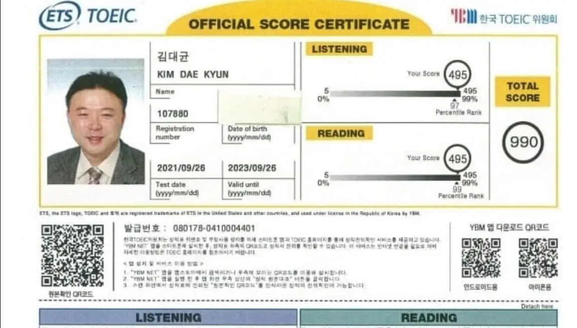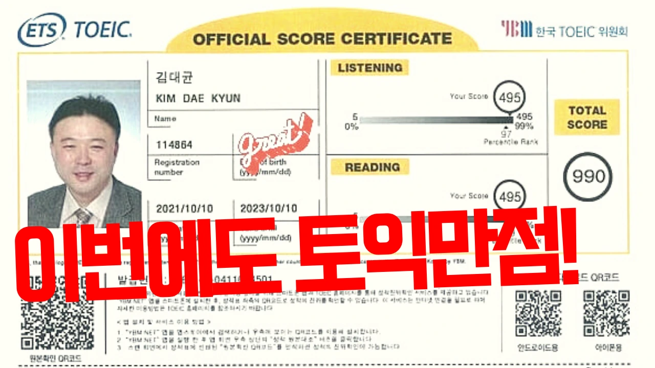 김대균토익킹 그래마킹 토익만점 성적표들 영상