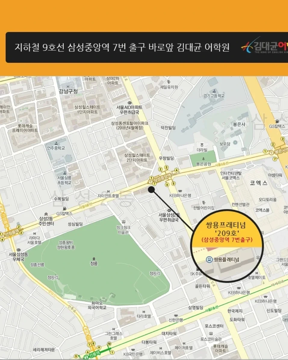 지하철 9호선 삼성중앙역 7번출구 김대균어학원