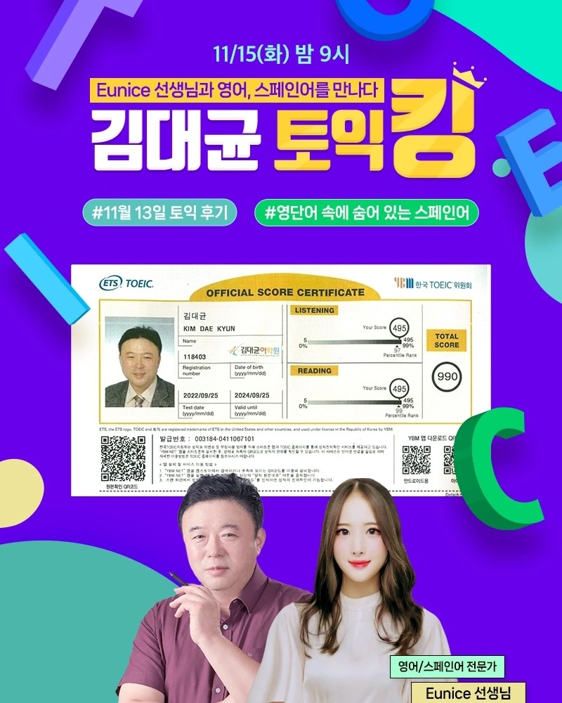 Dae Kyun Kim의 브런치입니다. 토익 최다응시 만점강사 김대균 김대균 영문법 김대균 맛집 김대균어학원 원장