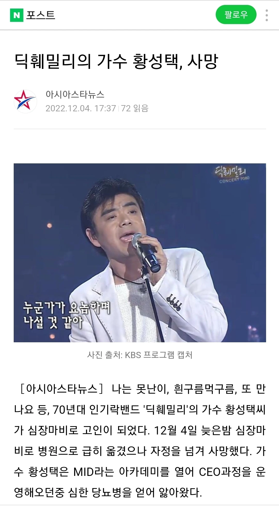 딕훼밀리 가수 황성택을 기리며
