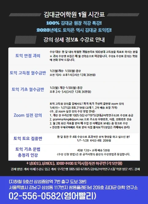 김대균토익킹 직강 2023년 1월 김대균어학원 시간표