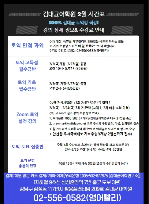 김대균어학원 2월토익 시간표 1월14일토익후기 5분 요약총평 풍문고등학교 고사장 김대균토익킹 그래마킹 ...